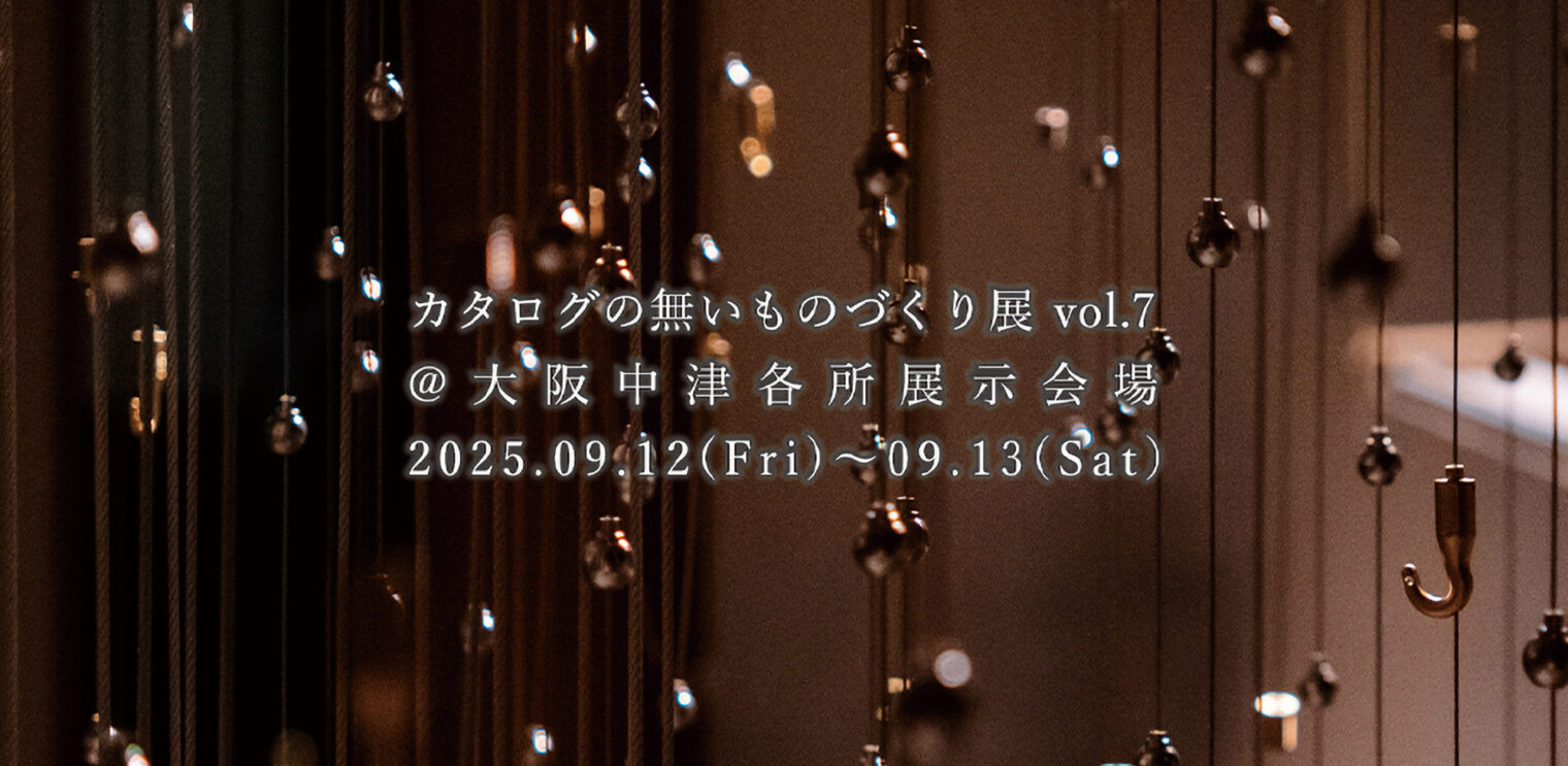 2025年9月12日(金)・13日(土)に大阪市北区中津エリアで開催、独自のものづくりを行うメーカーやサプライヤーなど、ものづくりや空間づくりに関わる企業による回遊型の展示会「カタログの無いものづくり展」へ出展いたします。