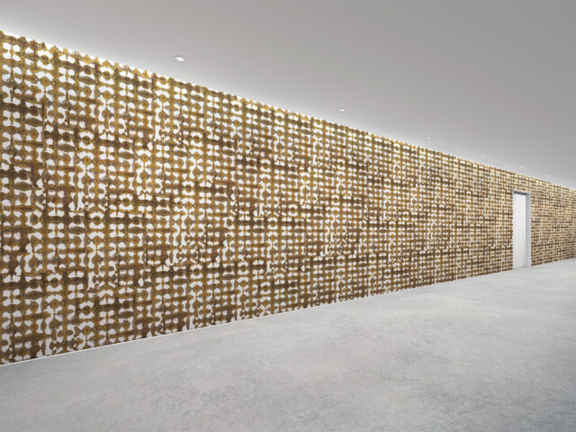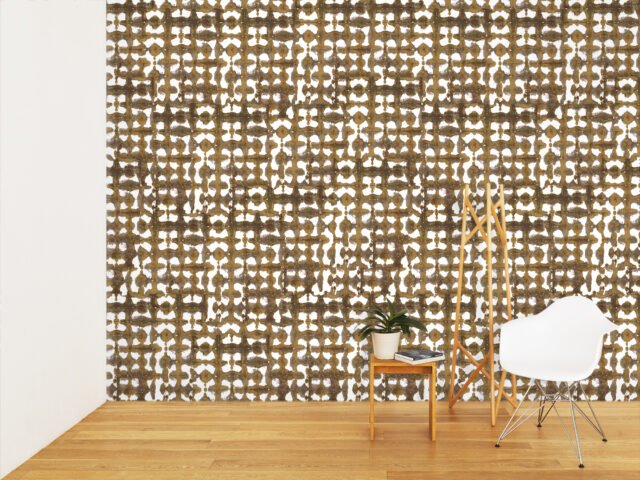壁紙は日本で11年過ごした中で出会った伝統的な絞り染めにインスパイアされて制作。有機的な紙と自然を想起させる色が調和し、独自の解釈で日本の文化と美学をデザインに反映しています。