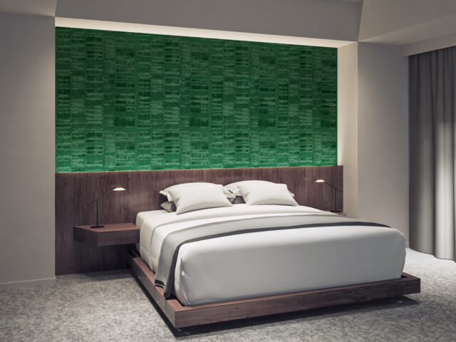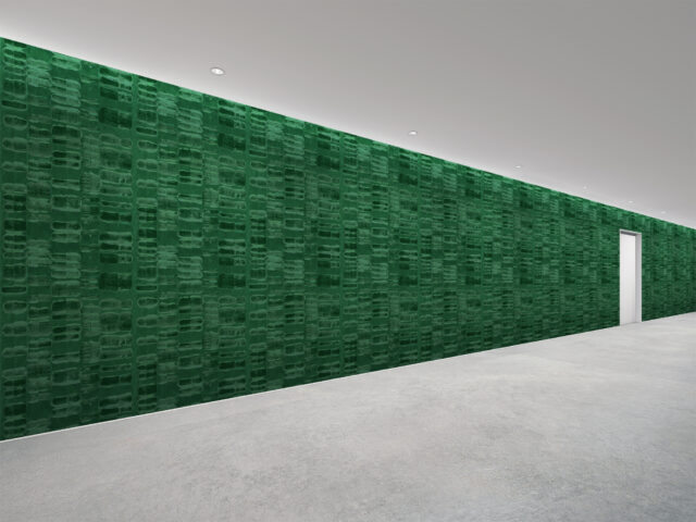 壁紙は日本で11年過ごした中で出会った伝統的な絞り染めにインスパイアされて制作。有機的な紙と自然を想起させる色が調和し、独自の解釈で日本の文化と美学をデザインに反映しています。