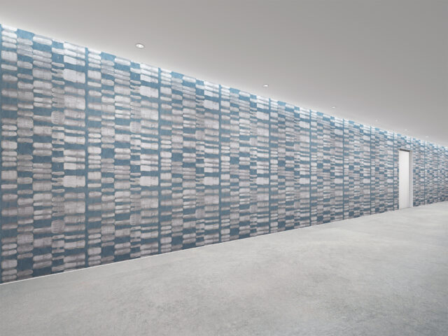 壁紙は日本で11年過ごした中で出会った伝統的な絞り染めにインスパイアされて制作。有機的な紙と自然を想起させる色が調和し、独自の解釈で日本の文化と美学をデザインに反映しています。