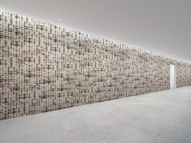 壁紙は日本で11年過ごした中で出会った伝統的な絞り染めにインスパイアされて制作。有機的な紙と自然を想起させる色が調和し、独自の解釈で日本の文化と美学をデザインに反映しています。