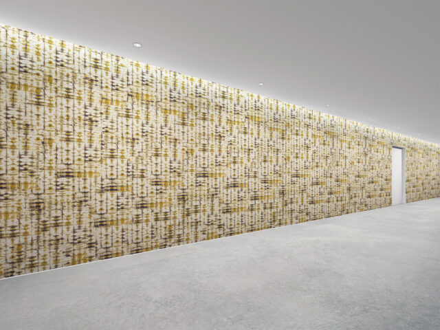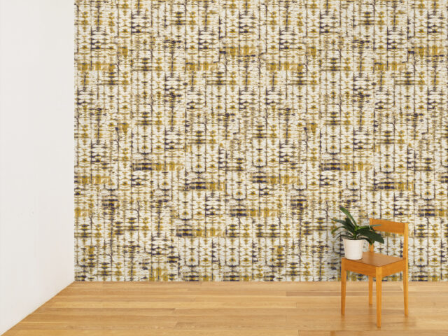 壁紙は日本で11年過ごした中で出会った伝統的な絞り染めにインスパイアされて制作。有機的な紙と自然を想起させる色が調和し、独自の解釈で日本の文化と美学をデザインに反映しています。