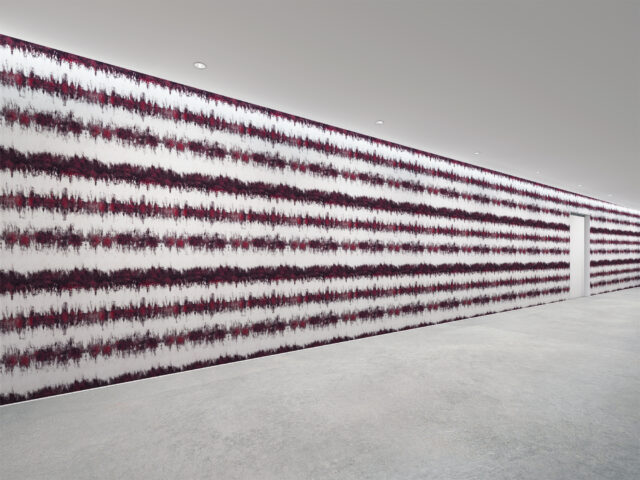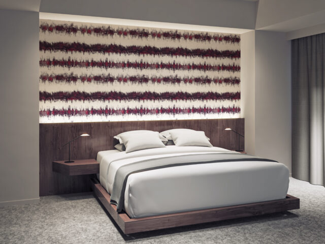 壁紙は日本で11年過ごした中で出会った伝統的な絞り染めにインスパイアされて制作。有機的な紙と自然を想起させる色が調和し、独自の解釈で日本の文化と美学をデザインに反映しています。