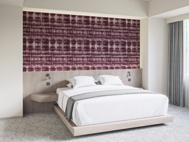 壁紙は日本で11年過ごした中で出会った伝統的な絞り染めにインスパイアされて制作。有機的な紙と自然を想起させる色が調和し、独自の解釈で日本の文化と美学をデザインに反映しています。
